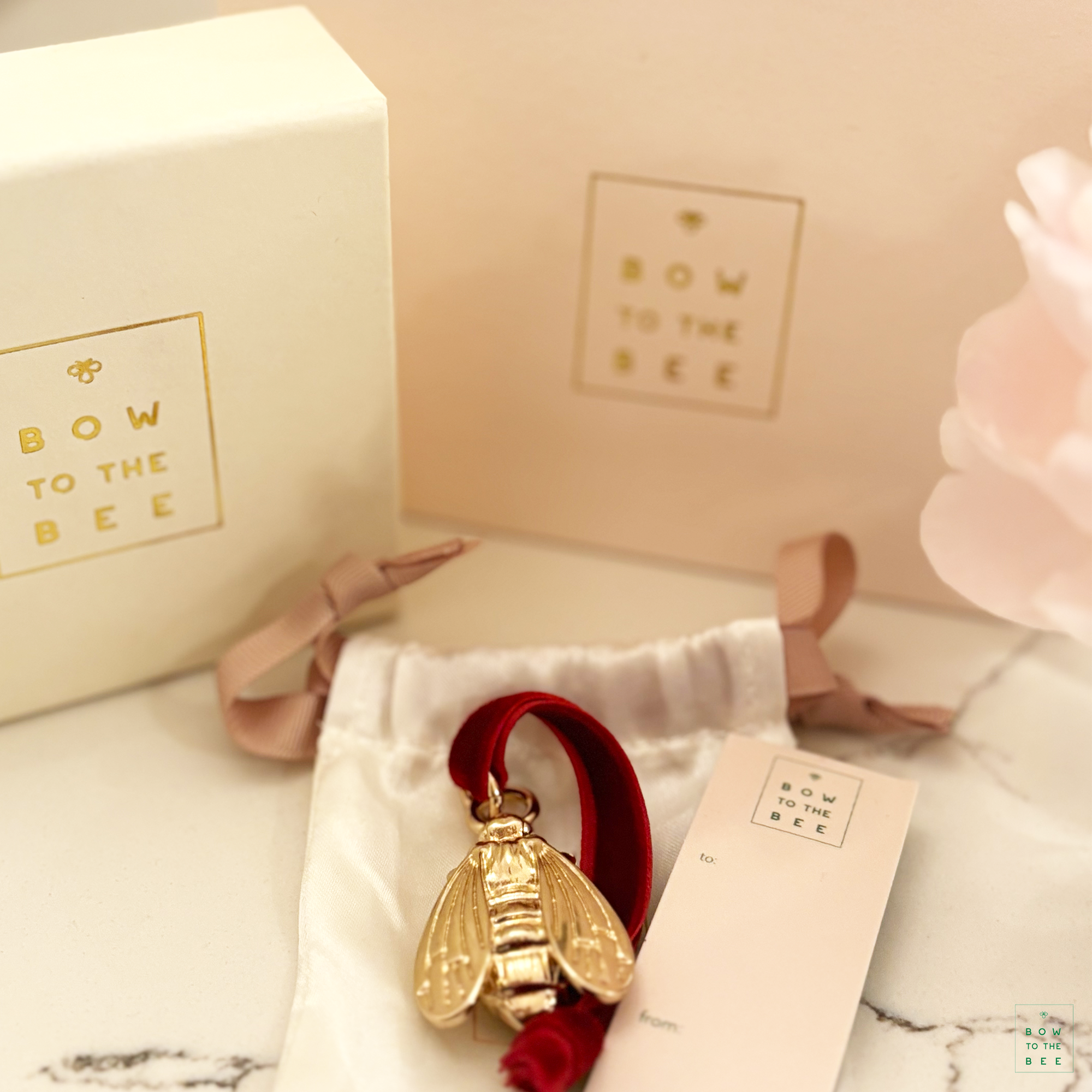 Bow to the Bee's small gold ornament makes a perfect gift for anyone who loves bees! It's crafted from gold-tone brass cast in the shape of the signature Bow to the Bee, custom designed bee.